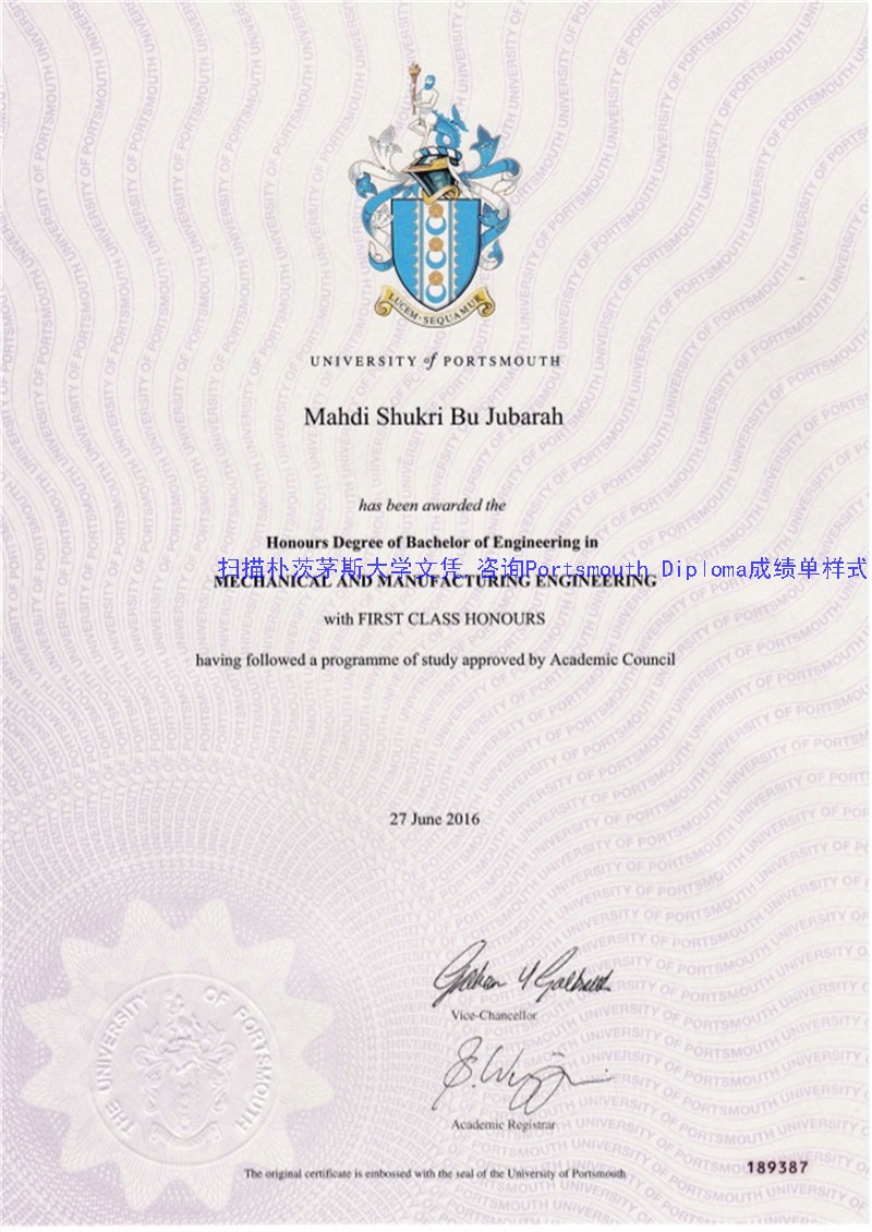 扫描朴茨茅斯大学文凭,咨询Portsmouth Diploma成绩单样式