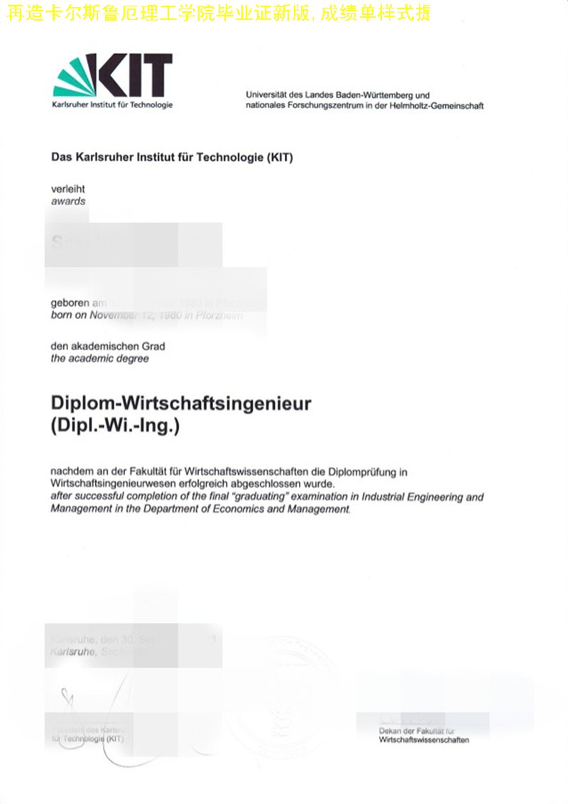 定做德国大学文凭:KIT毕业证成绩单、德国学历证书、卡尔斯鲁厄理工学院文凭。